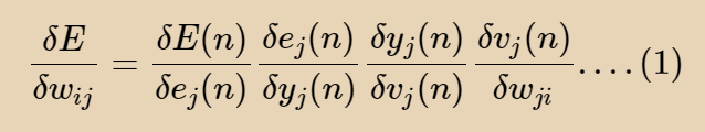 \frac{\delta E}{\delta w_{ij}} = - e_j(n)\phi'_j(v_j(n)) y_i(n).....(2)$$