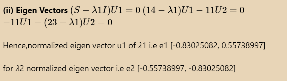 Hence,normalized eigen vector u1 of 𝜆1 i.e e1 [-0.83025082, 0.55738997]