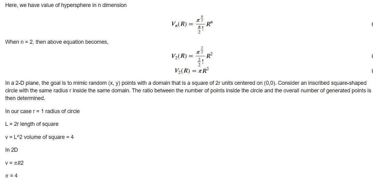 Estimation of Value of Pi From Area of Circle in Two Dimension Using Monte Carlo