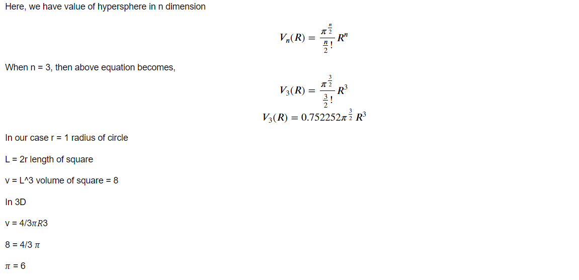 Estimation of Value of Pi From Volume of Sphere in Three Dimension