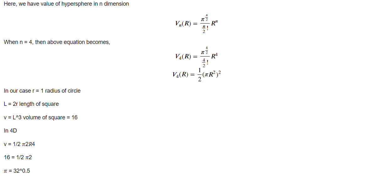 Estimation of Value of Pi From Area of Circle in Four Dimension